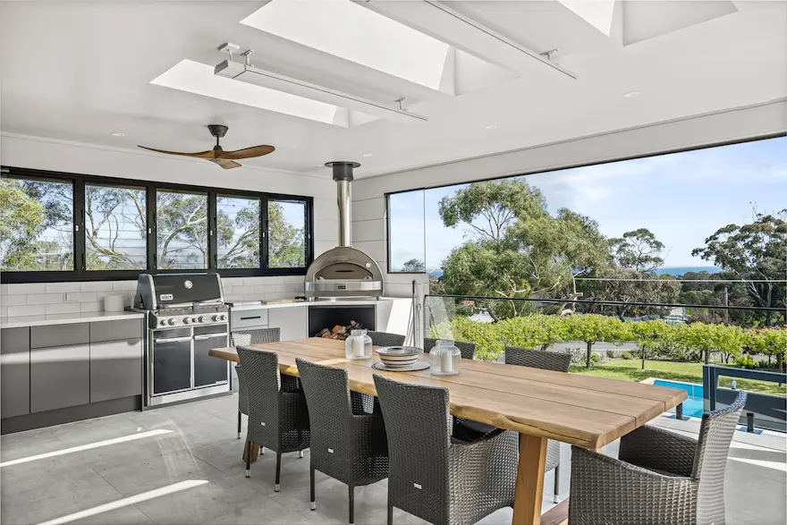 Our comprehensive renovation introduced low-maintenance windows that blend form and function, ensuring durability and ease of upkeep. A standout feature of this project is the expansive new balcony, complete with an alfresco dining area and a fully equipped outdoor kitchen. This space invites homeowners to enjoy the breathtaking bay views while entertaining guests or simply relaxing.